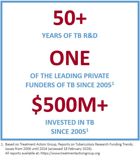 Since 2005, Otsuka has been one of the leading private sector funders in TB drug development.1